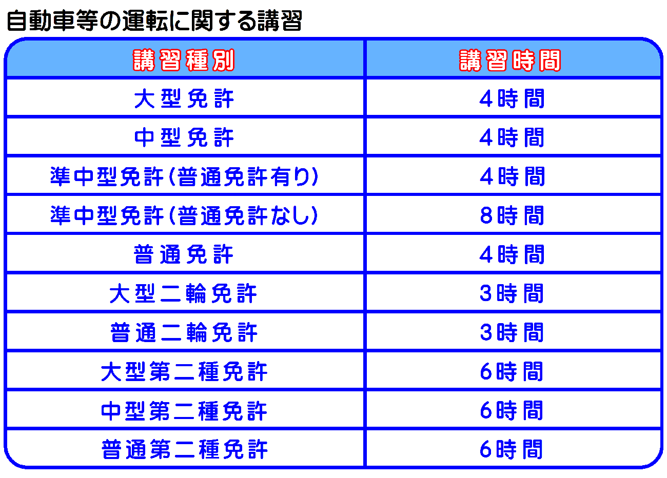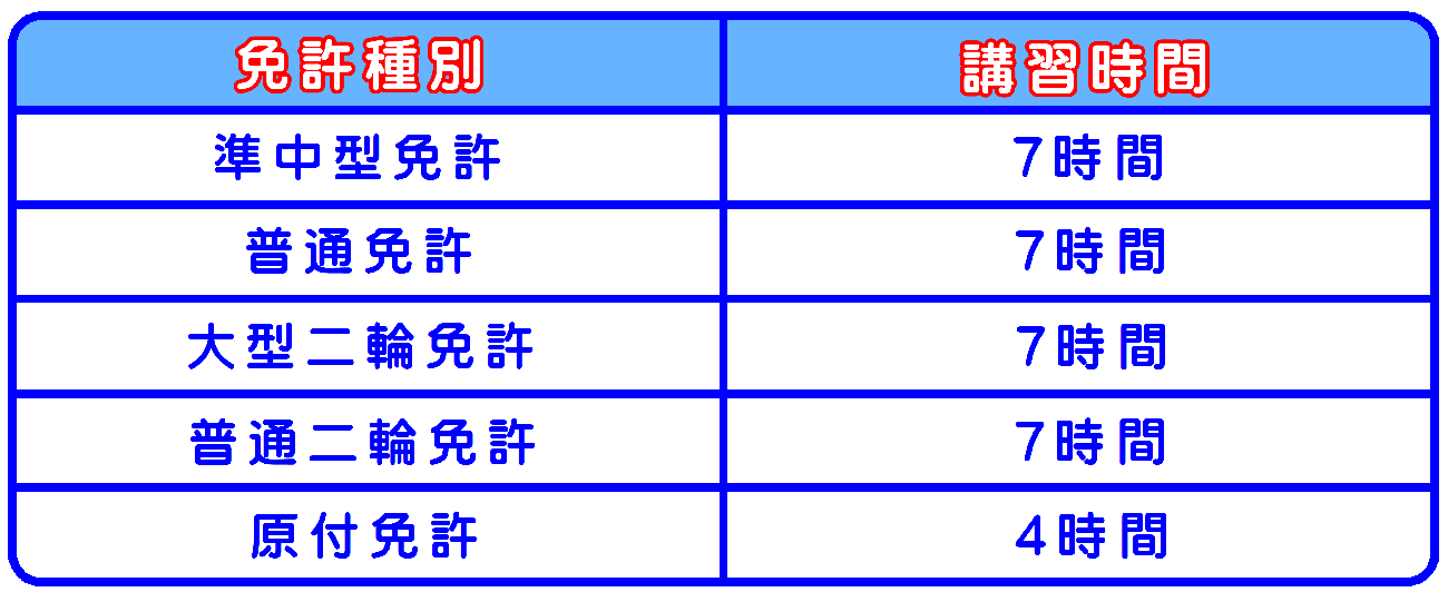 熊本県運転免許センタ-で実施される普通免許、大型二輪免許、普通二輪免許を取得するための技能試験に合格した者及び原付免許を受けようとする者に対して行われる講習です。